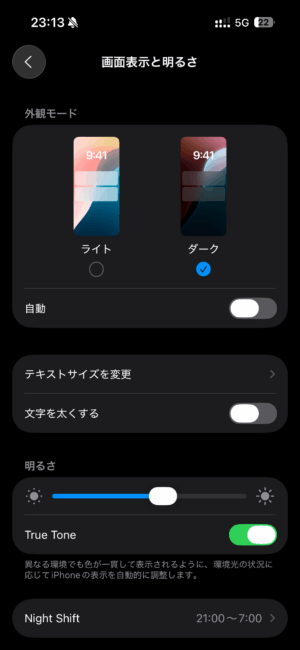 を選んで、下の画面で”ダーク”を選択。それだけ。